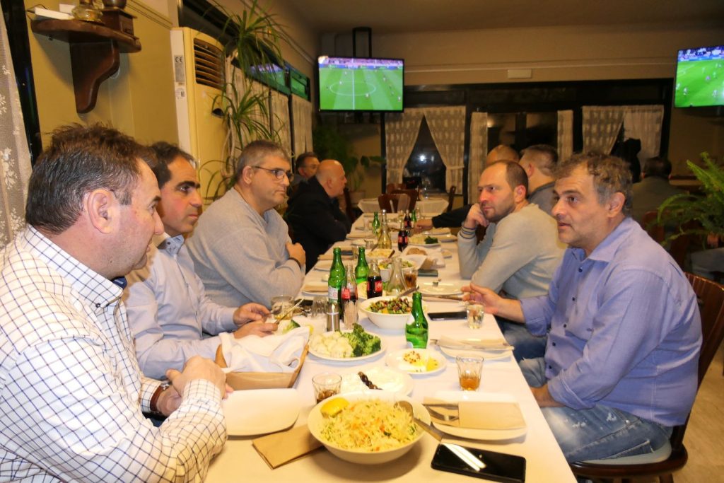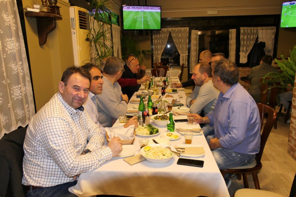 Στη συνεχεία ακολούθησε πλούσιο γεύμα με τα εκλεκτά εδέσματα που ετοίμασε ο Μπάμπης Λαζαρίδης ιδιοκτήτης του καταστήματος.