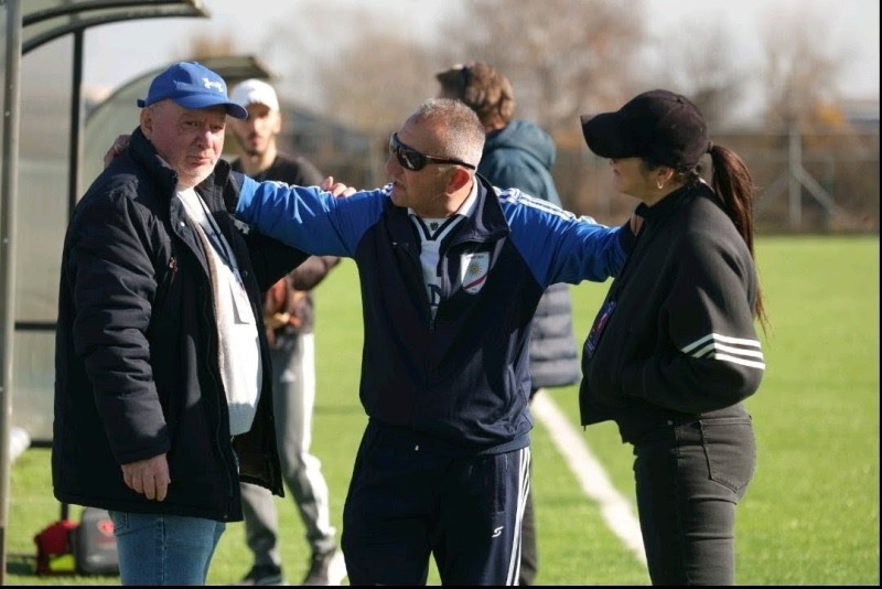 3) Ο συνεργάτης του προπονητή της Μικτής ομάδας της ΕΠΣ Πιερίας κ. Μχωλού Ευριπίδης Γκούμας στο μέσον με το μέλος της εκτελεστικής το της ΕΠΣ Πιερίας Γιώργο Καρανικόλα και την Παρατηρητή αγώνα κ. Σοφία Τσιλίκη .