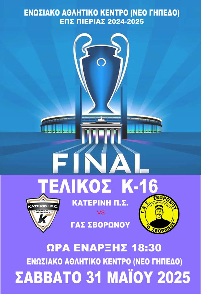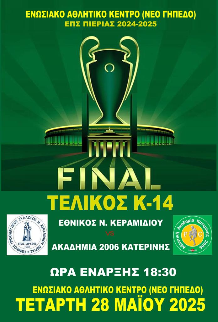 ΕΠΣ ΠΙΕΡΙΑΣ Κλήση Κ-14 για ΣΑΒΒΑΤΟ 11-10-2025, ώρα 15:45 ΗΛΙΚΙΑ 2012 Καλούνται οι παρακάτω ποδοσφαιριστές να βρίσκονται στο Αθλητικό κέντρο της Ε.Π.Σ. Πιερίας στην Ν. Έφεσο την ΣΑΒΒΑΤΟ 11-10-2025 και ώρα 15:45 Σε περίπτωση αδυναμίας να ειδοποιηθεί ο προπονητής Κος Μιχωλός Δημήτριος στο τηλ. 6948866980....